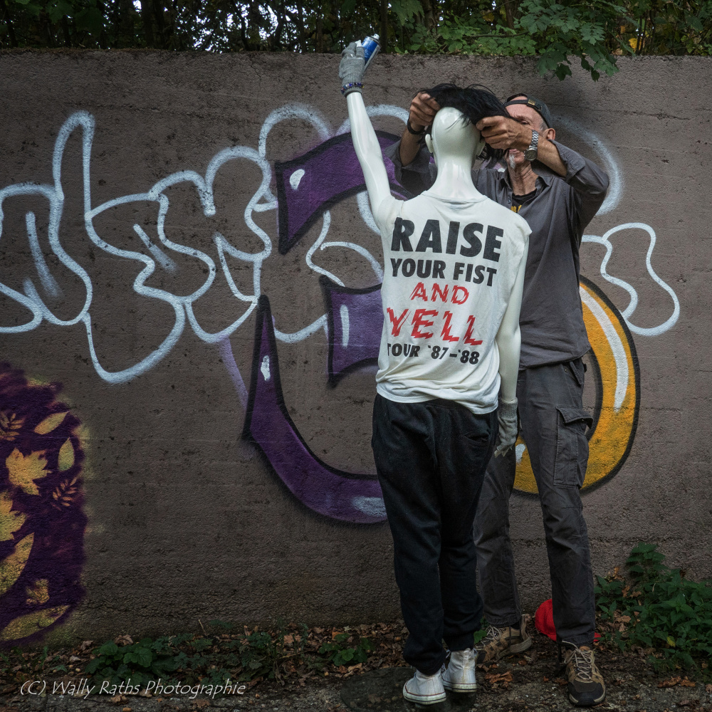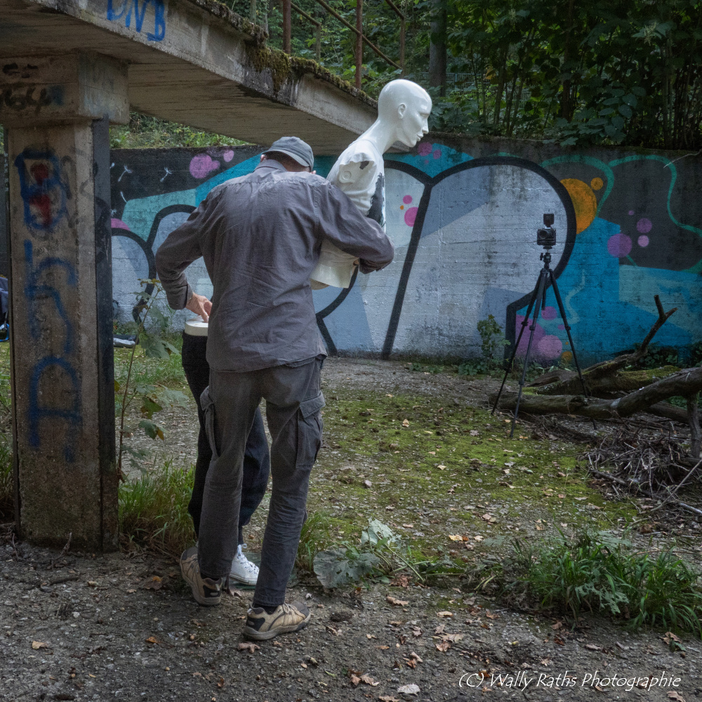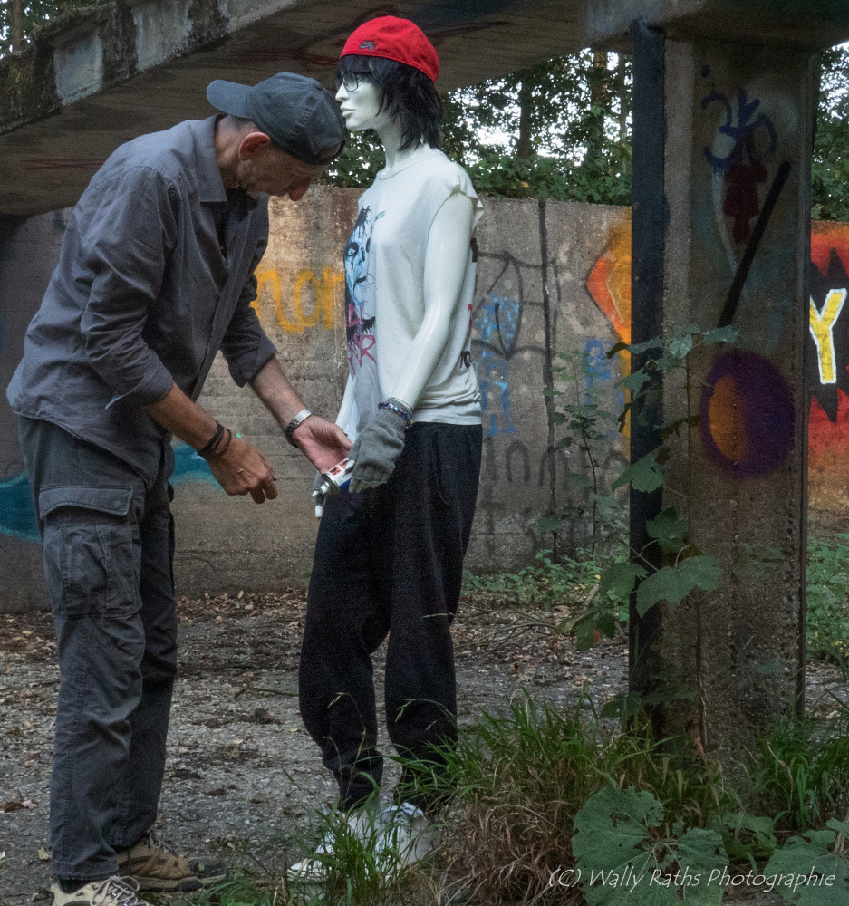 Für eine der Aufnahmen gebrauche ich den Selbstauslöser, setze mich im Hintergrund selbst noch als Sprayer in Szene.