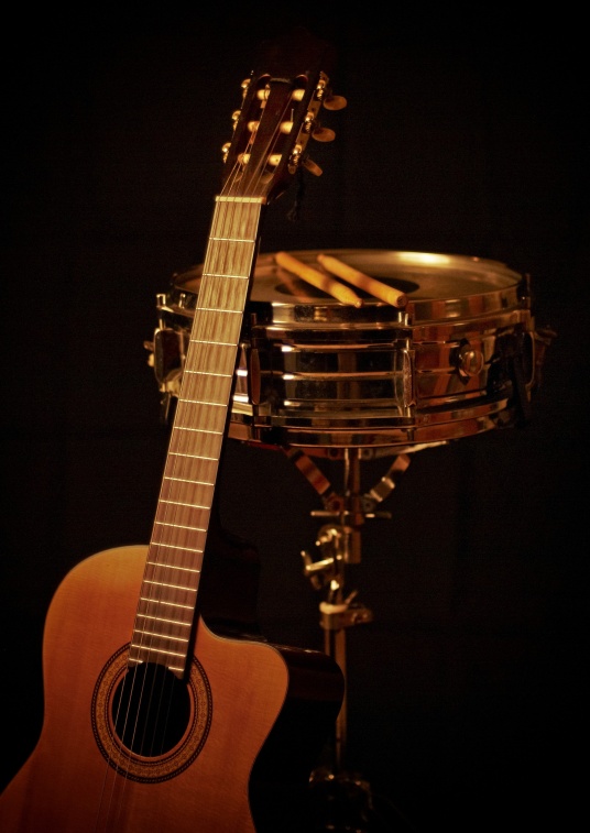 Auch beim zweiten Motiv (Akustikgitarre mit Snare Drum) wurde mit offener Blende 1.4 gearbeitet, damit sich die Gitarre etwas von der Snare im Hintergrund abheben konnte.