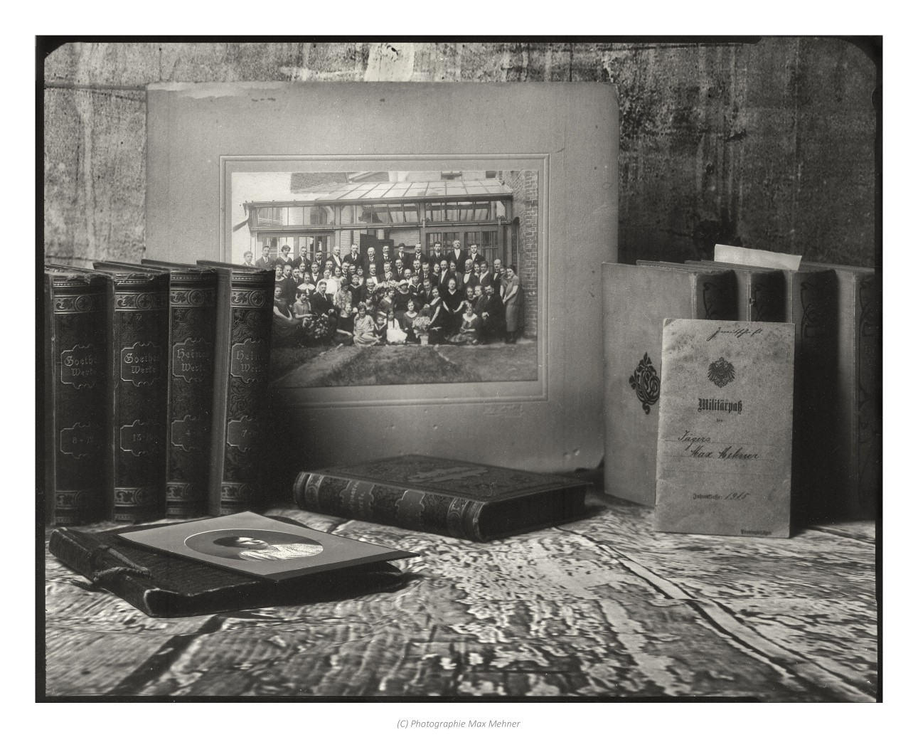 Mein Großvater Max Richard Mehner war sehr belesen (viele seiner alten Klassiker-Bücher habe ich noch), dann gibt es ein Gruppenbild der Mitarbeiter seiner Strumpffabrik, wo er leitender Angestellter war, ich habe noch seinen Militärpass sowie ein klassisches Studioportrait seiner späteren Frau Berta.