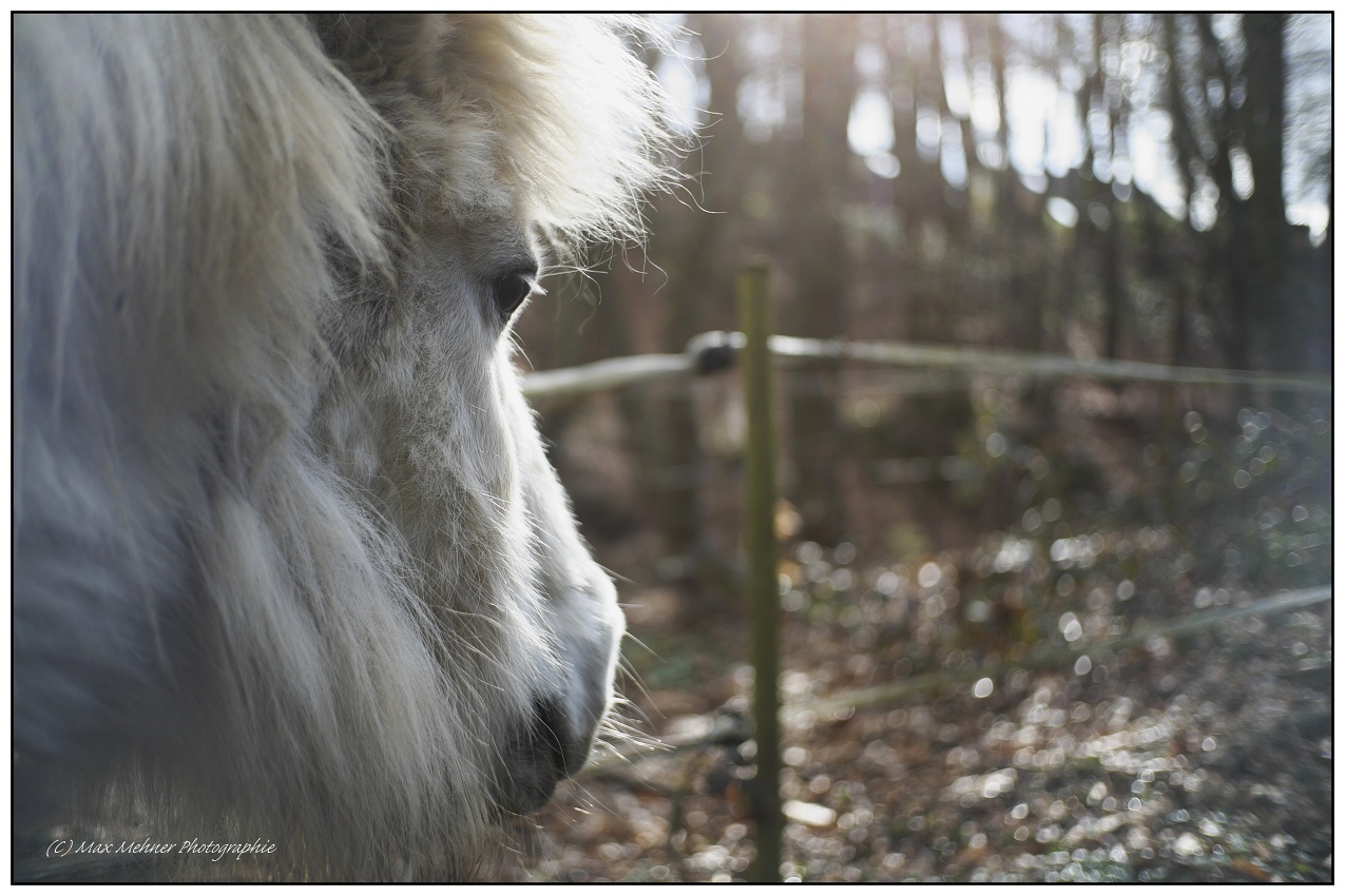 Vor wenigen Wochen auf einer Pony Weide. Die Märzsonne schien, und ich hatte das simple 7Artisans 25mm 1.8 Objektiv auf meiner Fuji. Um etwas von dem flirrenden Sonnenlicht einzufangen, das von der fast kreisrunden Blende des Kamera-Objektivs in eine schöne Unschärfe eingebettet wurde.