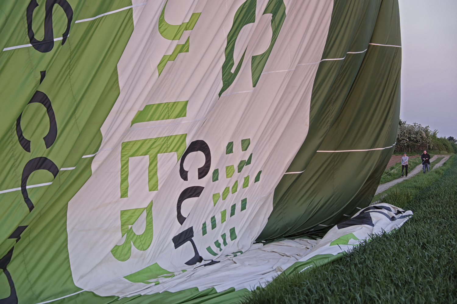 So hatten wir das Glück, zwei Stunden dahinzuschweben, bis unser Ballonführer uns sanft auf einem Rapsfeld aufsetzte, von wo wir dann noch einige 10 Meter weiter rutschten und genau mitten auf einem Wirtschaftsweg zum Stehen kamen – in meinen Augen eine perfekte Landung.