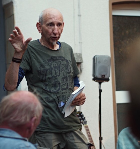 Neben dem Vortrag von Auszügen aus dem Buch präsentierte der Autor eigene kleine Kompositionen, zu denen er auch Gitarre spielte.