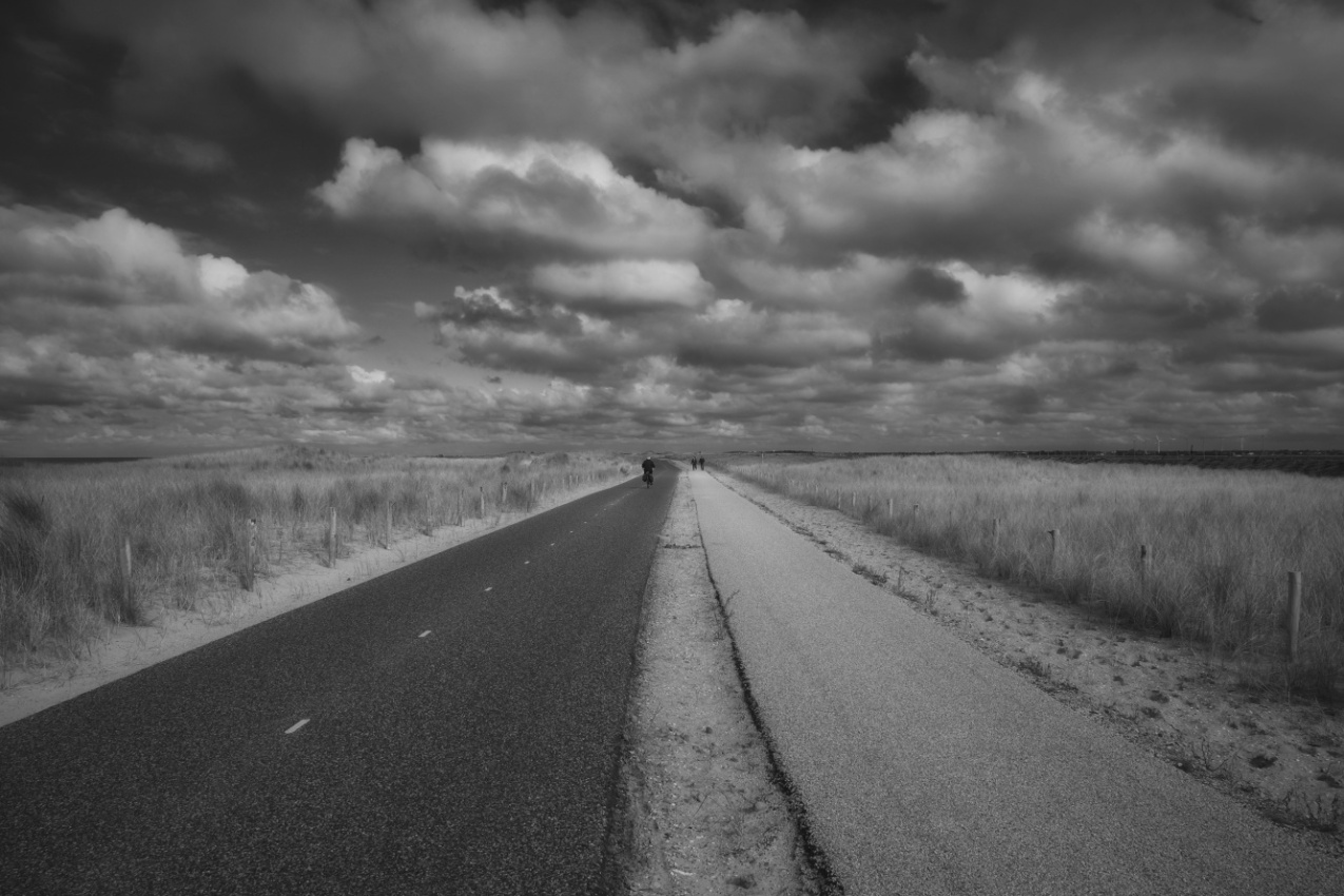 Die neu gestaltete Dünenlandschaft vor dem ewig langen Deich zwischen Camperduin und Petten beeindruckte mich durch ausgeglichene Ruhe und fast unendliche Weite. Die dort gemachten Fotos verlangten eindeutig nach den Grau-Tönen im gesamten Spektrum zwischen Schwarz und Weiß.