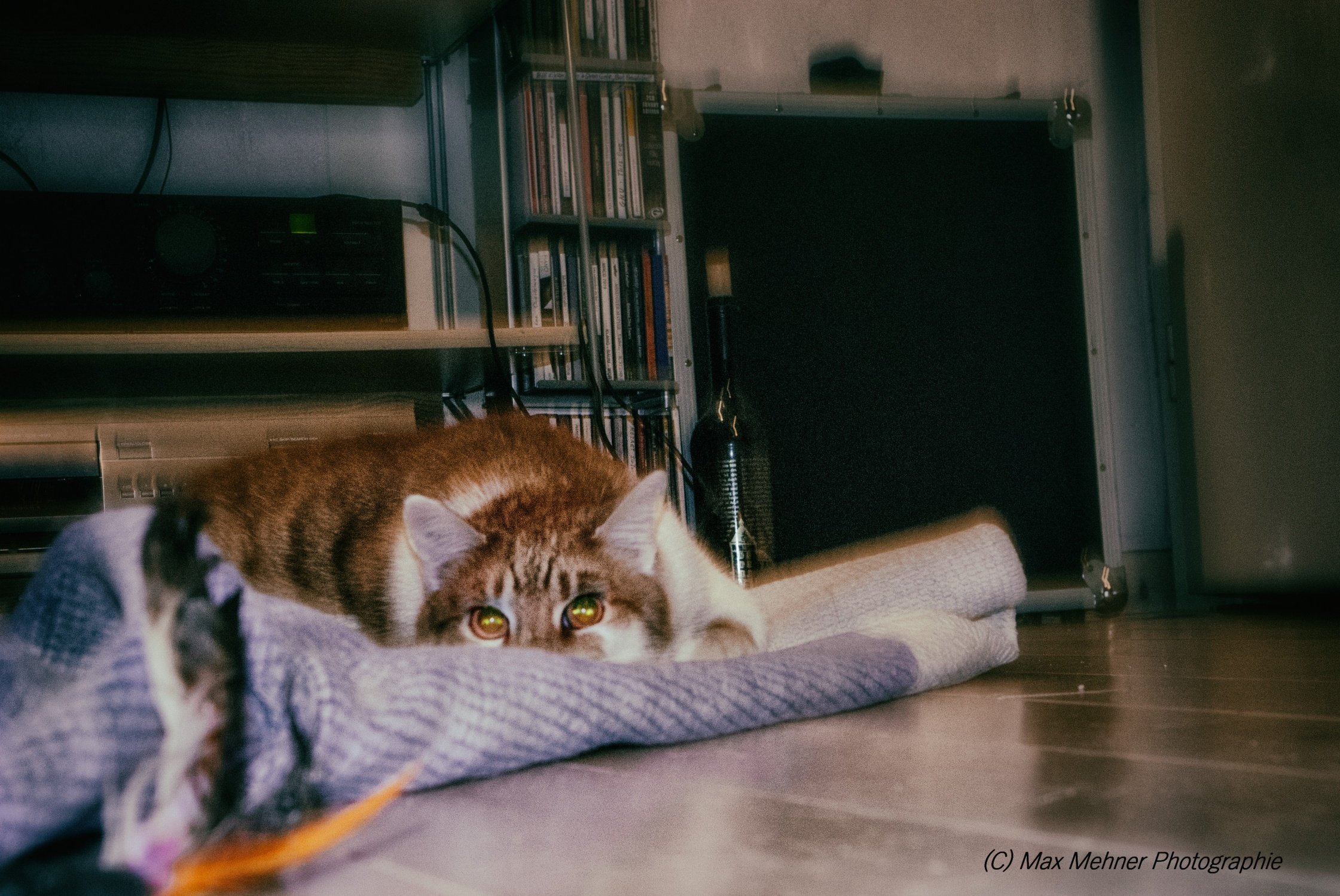 Fünf Minuten später war seine Welt wieder in Ordnung – die Jagdsaison war eröffnet. Gebannt fixierte sein Blick dieses Miststück, den Vogel mit den aufreizend bunten Federn, der aufgeregt an der dünnen Stange herum sauste, mal über ihn flatterte, mal unter den Schrank kroch, mal sich unter dem Teppich versteckte, das verdammte Luder. Na warte, er hatte Geduld und er war schnell - er würde es kriegen...
