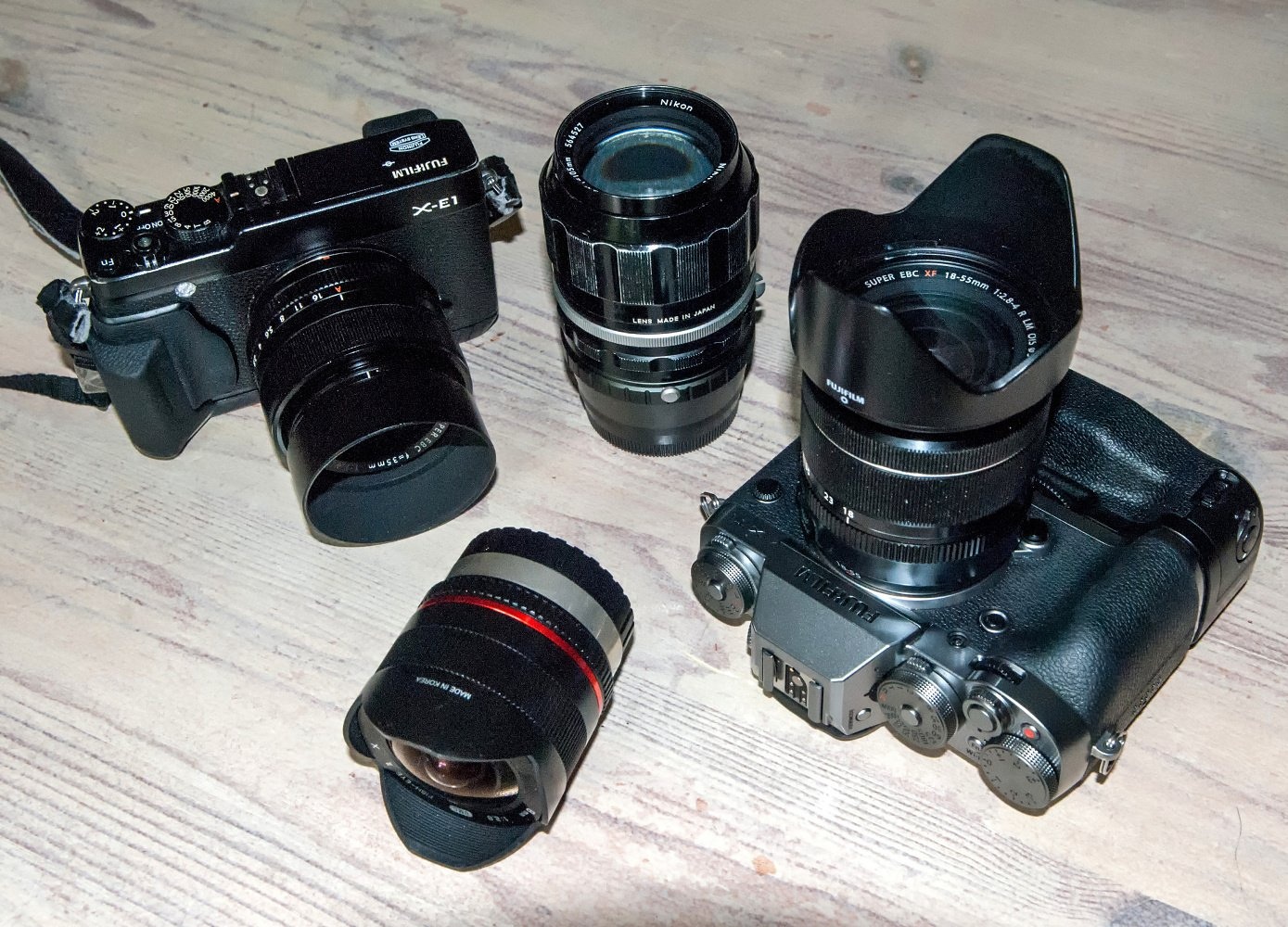 Ich packte meine ebenfalls kompakte Fuji X-T1 ein sowie die noch kleinere, unauffällige X-E1, dazu das hervorragende 18-55mm (27-82,5mm*) Standard-Zoom, ergänzt durch das lichtstarke 1,4/35mm, das Samyang 8mm (12mm*) Fischauge sowie am Adapterring mein uraltes manuelles Nikkor 2,5/105mm (ein kleines, lichtstarkes Tele mit gut 150mm* und Offenblend-tauglich). Dazu ein leichtes Stativ, für uns beide gemeinsam. Insgesamt also eine überschaubare Ausrüstung, auch gewichtsmäßig.
